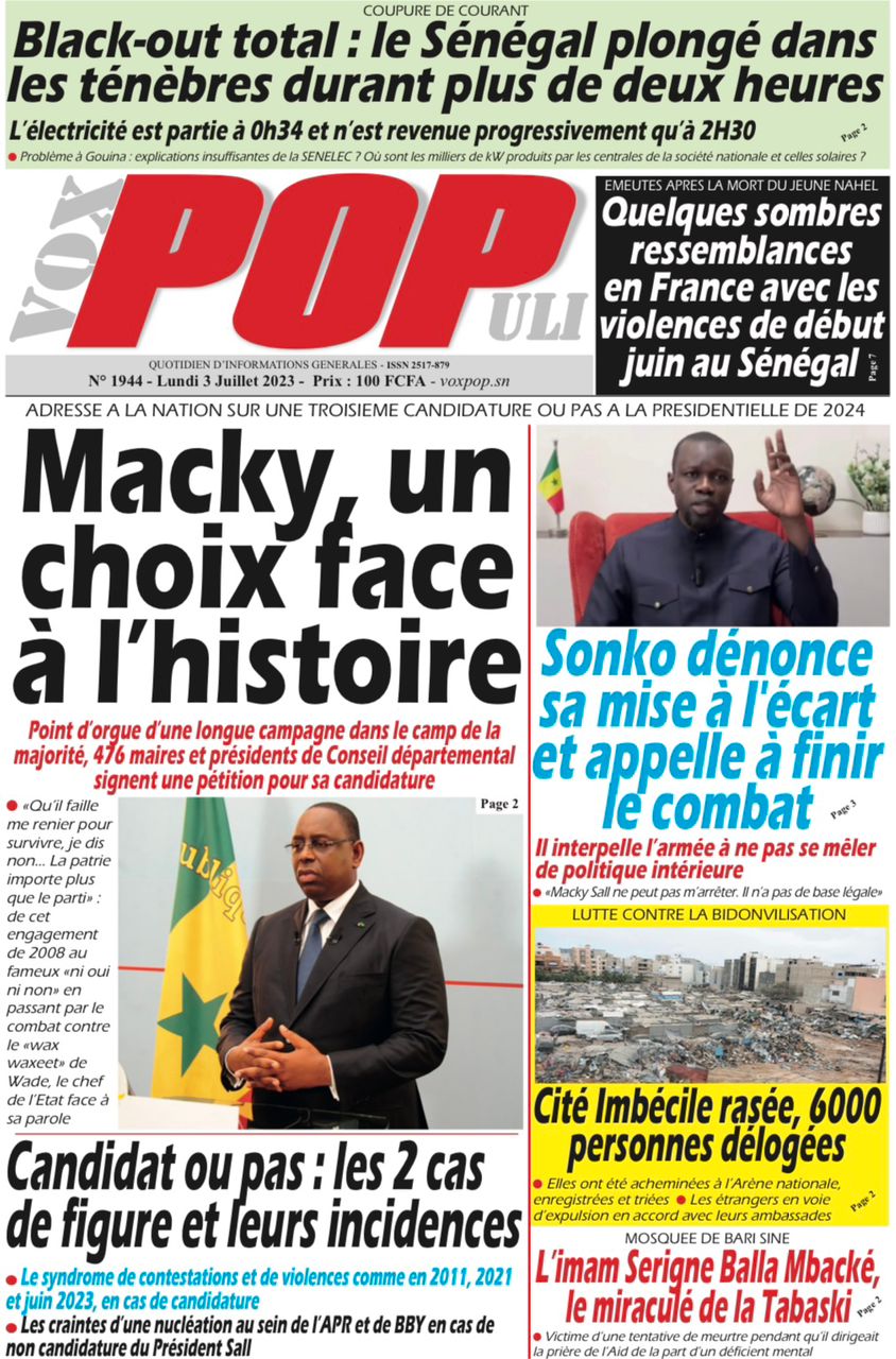 Une des journaux du lundi 03 juillet 2023 Auteur/autrice de la publication :LA REDACTION Publication publiée :3 juillet 2023 Commentaires de la publication :0 commentaire Une des journaux du lundi 03 juillet 2023Publicité Partager : Cliquez pour partager sur Facebook(ouvre dans une nouvelle fenêtre) Facebook Cliquer pour partager sur X(ouvre dans une nouvelle fenêtre) X Publicité A lire aussi : Une des journaux du vendredi 28 avril 2023 Étiquettes: lundi 03 juillet 2023, une des journaux Read more articles Article précédentUne des journaux du lundi 26 juin 2023 Article suivantUne des journaux du jeudi 06 juillet 2023 Vous devriez également aimer Une des journaux du mardi 1er août 2023 1 août 2023 Une des journaux du lundi 08 mai 2023 8 mai 2023 Une des journaux du vendredi 26 mai 2023 26 mai 2023 Une des journaux du samedi 29 juillet 2023 29 juillet 2023 Laisser un commentaire Annuler la réponseCommentEnter your name or username to comment Enter your email address to comment Saisir l’URL de votre site (facultatif) Enregistrer mon nom, mon e-mail et mon site dans le navigateur pour mon prochain commentaire. Δ