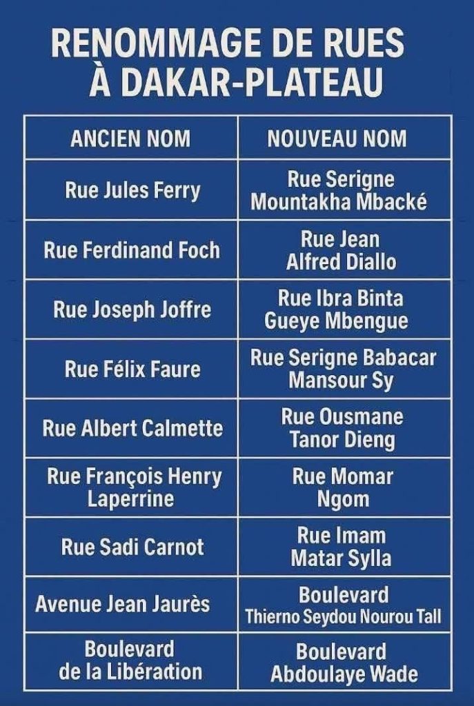 Le collectif dénonce l’absence de noms de femmes dans la nouvelle toponymie, alors que de nombreuses figures féminines ont marqué l’histoire du Sénégal. « Les illustres femmes qui ont contribué au développement de notre pays méritent respect et honneur », martèle la lettre. Parmi les noms proposés pour rectifier cette injustice, le collectif cite Caroline Diop, Arame Diène, Mariama Bâ, Adja Rose Bass, Mame Diarra Bousso, Mame Fama Wellé, Aline Sitoé Diatta, Dieumbeut Mbodj et Ndatté Yala, « pour ne citer qu’une poignée de noms ».